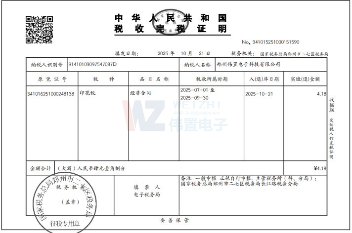 2025年10月21日,偉置電子印花稅若干!緯r間2025年7月1日至2025年9月30日】